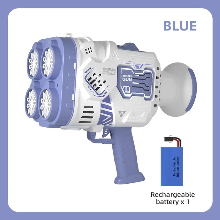 1,Powered by lithium battery: Interesting leaf blower that produces a stream of bubbles. With realistic design and fresh colors, this toy bubble blower is what you need. tap the bubble liquid and pull the trigger, a lot of bubbles will be ejected!